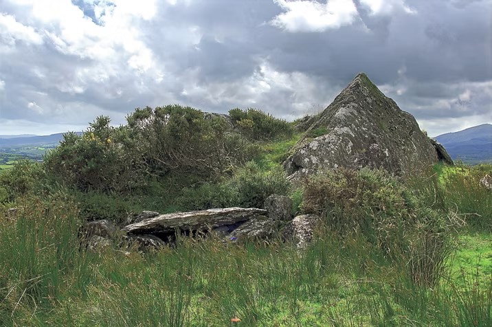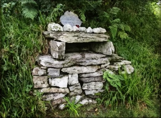 Known in Irish as Carraig an Aifrinn, Mass Rocks have their origins in Penal times (1695 to 1756) when the Catholic faith was proscribed in Ireland. Whilst the Penal Laws managed to limit the public expression of Catholicism, they did not ensure the elimination of the Catholic faith or result in the mass conversion of Catholics (Bartlett 1990, 2). Despite Mass Houses being closed and chapels appropriated by Protestant authorities, Mass continued to be celebrated secretively in barns, out-houses, and hidden private chapels. It was frequently celebrated under trees and bushes, in ditches and in the open air at altars known as Mass Rocks situated in fields, glens, and on mountain sides. Mass Rocks played a crucial role in maintaining Catholic identity and ensuring the survival of the Catholic faith.
